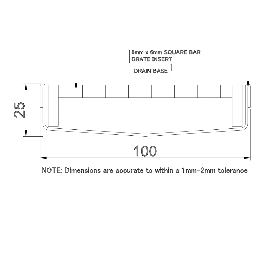 100 x 25mm Square Bar Stainless Steel Strip Drain (316)
